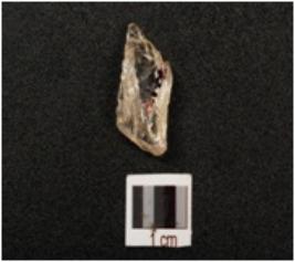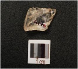 | Description / विवरण | Fragment of quartz blade with double ridges on dorsal, ripple marks on ventral, use-wear marks on cutting edges and translucent. |