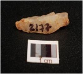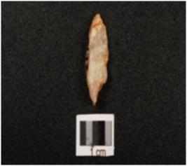 | Description / विवरण | A quartz blade with prominent mid ridge on surface, triangular in section and use-wear marks on cutting edges. |
