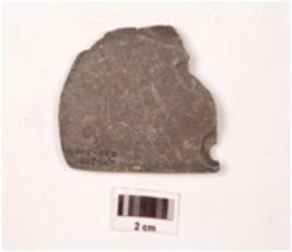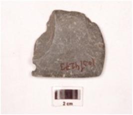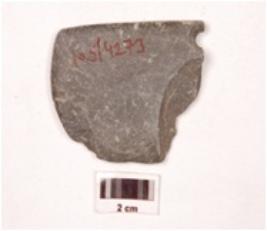 | Description / विवरण | A fragment of harvester made on basalt, uneven shape, surface is smooth and polished. |