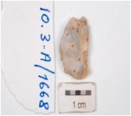 | Description / विवरण | A chert end struck flake with ripple marks on ventral side. |