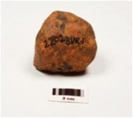 | Description / विवरण | Unmodified nodule of laterite, chipped off surface, |