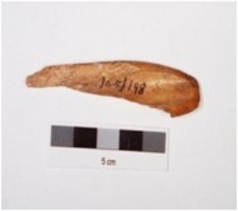 | Description / विवरण | A bone scraper, one side broken, sharp edge and well polished surface. |