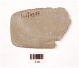 | Description / विवरण | A fragment of harvester made on basalt, surface is smooth and polished uneven in shape. |