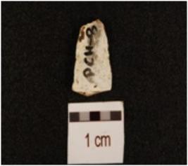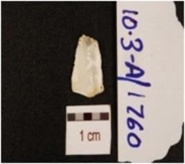 | Description / विवरण | A blade made of chert, mid ridge on dorsal side, prominent bulb on ventral side and use marks on edges. |