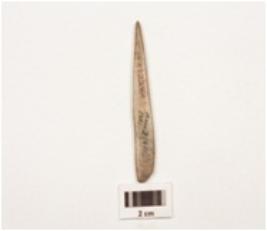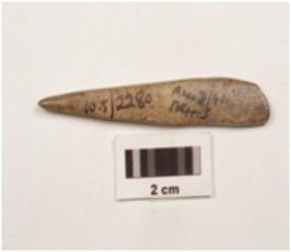 | Description / विवरण | Bone point, pointed one end and other end is broken polished and smooth surface, |