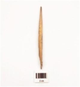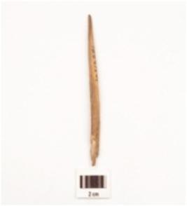 | Description / विवरण | Fragment of a bone point tapering towards painted end, broken tip, smooth and polished surface, broken along other end. |