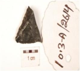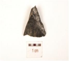 | Description / विवरण | Fragment of arrow head, triangular shaped and retouched edge. |