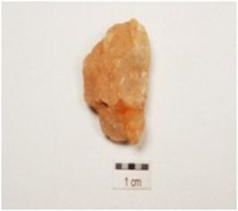 | Description / विवरण | A quartz flake, smooth surface with flake scars and cortex visible on surface. |
