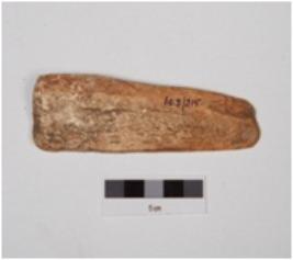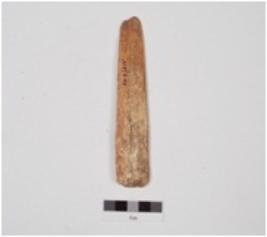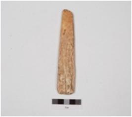 | Description / विवरण | A scraper made of bone having one end with blunt edge and well polished surface. |