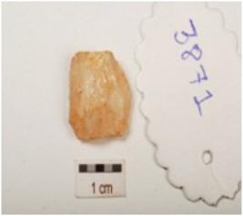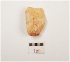 | Description / विवरण | A quartz utilized flake, striking platform with smooth surface and use wear marks on working edge. |