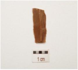 | Description / विवरण | A parallel sided chert blade with a prominent ridge on dorsal side ,broken from both ends use wear marks on both cutting edges and triangular in section. |