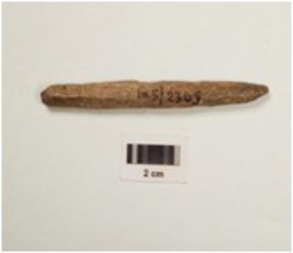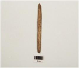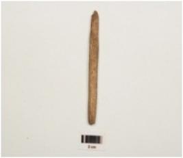 | Description / विवरण | Fragment of bone point with polished surface at one side & porous surface at other side, broken at both ends, rectangular cross section |