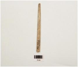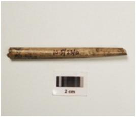 | Description / विवरण | Fragment of point with polished surface, semi- circular cross section, broken at both ends, |