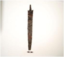| Description / विवरण | Fragments of iron knife, broken into three pieces, uneven surface improper edges, thin in section with barb and tang. |