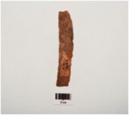 | Description / विवरण | Fragment of copper knife, broken on both ends, irregular edges, thin in character and chemically treated. |