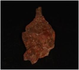 | Description / विवरण | Fragment of copper knife, surface with tang, corroded and rough surface. |