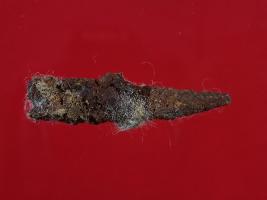 | Description / विवरण | Trench F-7, Depth 20 cm, Pit 1 sealed by layer 1 This is a arrow head is made of iron. Hard patina with heavy dust and dirt deposited on it. Surface is rough and appearance is brick brown colour. Cracks on its surface. Some yellow foreign particles deposited on it. |