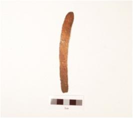 | Description / विवरण | A fragment of copper knife, flat curved in shape, round top and flat base, thin in character, irregular edges and polished. |