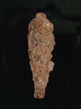 | Description / विवरण | Trench B-4, Stratum Layer 3 Arrow head made of iron alloy and broken on the one end. It seems to be in leaf shaped but due to deposition of hard patina and dust and dirt it has become doubtful. Surface is rough. There are some stone like small pieces are sticked on it. |