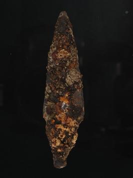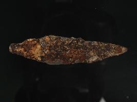 | Description / विवरण | Trench A-3, Stratum Pit sealed by Layer 2 Arrow head made of iron alloy. It is broken on one end and it is in leaf shape. Hard patina with heavy dust and dirt is deposited on it. On its surface some yellow coloured foreign particles are deposited on it. Surface is rough and its appearance is of brown colour. |