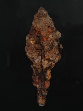 | Description / विवरण | Arrow head made of iron alloy. It is in leaf shape. Broken and hard patina with heavy dust and dirt deposited on it. Surface is rough. Appearance is of brown colour. |