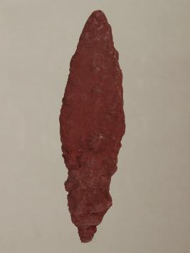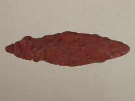 | Description / विवरण | Trench BX-7, Stratum Layer 2 This is an arrow head made of iron alloy. Broken on the one end. It is in leaf shape. Surface is smooth but uneven. Hard patina with heavy dust and dirt is deposited on it. Appearance is of dark brown colour. |