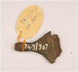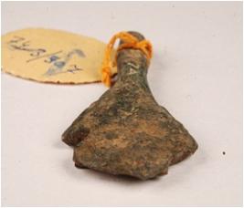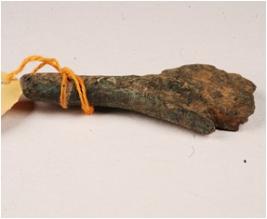 | Description / विवरण | Fragment of a copper spearhead,remaining portion of spearhead is missing broad working edge and cylindrical handle. |