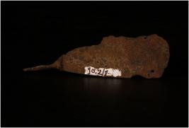 | Description / विवरण | Fragmentary part of knife, one short handle. Upper portion is broad and flat. Uneven sides, rectangular section. |