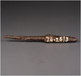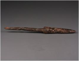 | Description / विवरण | Elongated iron arrowhead with four edges, pointed tip, the object is chemically treated, rough surface. |