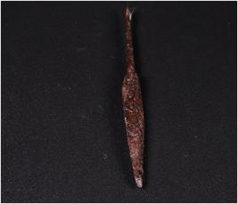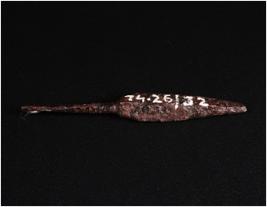 | Description / विवरण | A iron arrow- head, working tip is slightly broken, sharp edges, long handle. |