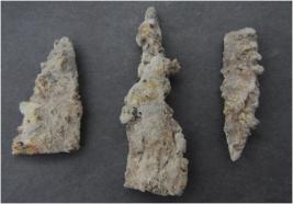 | Description / विवरण | Trench A, Stratum Layer 4 These are three fragments of arrow head made of iron. They are all badly rusted and have a rough surface. |