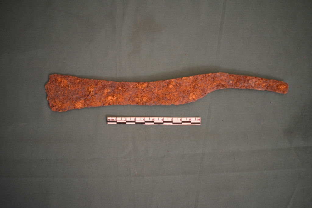 An warrior Dao. A kind of sword commonly used by the Mizo people. Handle is not covered by any material. It is wider towards the tip, it has bevel tip. Little curved at the middle part of the dao.