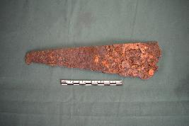 Dao. A knife of sword used by the Mizo people. Handle is broken. It is wider towards the tip. It has bevel tip.