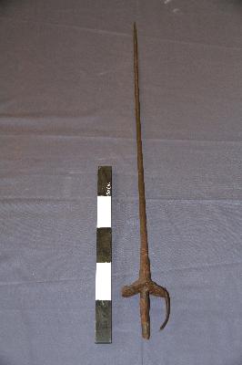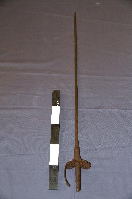 | Description / विवरण | A well-made sword with a long blade. The blade gradually narrowed and ended with a pointy tip. It is attached to the hilt with a knuckle guard. The bottom of the knuckle guard and the handle is broken. |