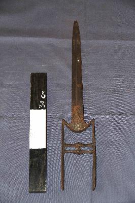 | Description / विवरण | Katar or Katara is a push dagger. The blades are triangular, double edge, resting upon an H shape handle with a double grip near the middle providing a perfect grip in hand-to-hand combat. It was used by both men and women. The katars were used as a symobl of status by kings and nobles. It has a floral design etched in silved at the handle. |