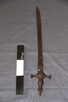 | Description / विवरण | A straight long edged blade is attached to a hilt and it is mostly used for manual cutting or thrusting. |