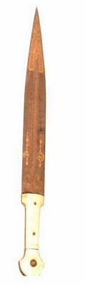 | Description / विवरण | Qama with ivory handle with gold design on top as well as bottom of the blade on both sides. |
