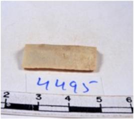 | Description / विवरण | A fragment of a rectangular shaped chert blade showing dorsal sides with sharp edges having smooth surface and triangular section. |