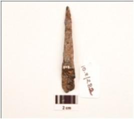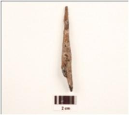 | Description / विवरण | An iron chisel flat in shape, uneven surface, rusted and partly broken. |