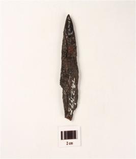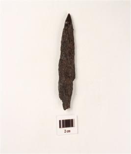 | Description / विवरण | Tanged arrow head made of iron, chemically treated object, broken shoulder and base. |