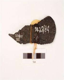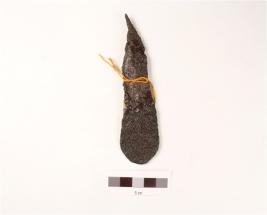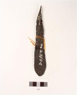 | Description / विवरण | Leaf-shaped arrow head with thin flattened section, chemically treated object. |