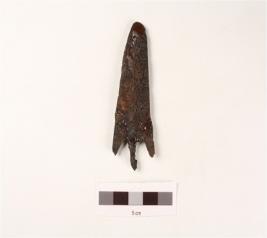 | Description / विवरण | Arrow head made of iron, chemically treated object. |