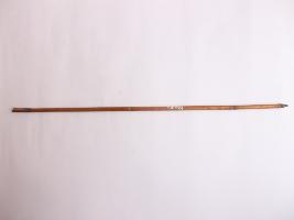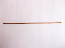 | Description / विवरण | This is common type of arrow made of wooden shaft and metal head. Shape of head is regular arrow type. Base of arrow has a piece of ivory that gives a steady hold during throw. Basal piece of ivory is tied with grass derived string. Head of the arrow is small and light weight. |