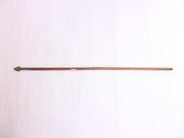 | Description / विवरण | This is common type of arrow made of wooden shaft and metal head. Shape of head is regular arrow type. Base of arrow has a piece of ivory that gives a steady hold during throw. Basal piece of ivory is tied with grass derived string. Head of the arrow is small and light weight. |
