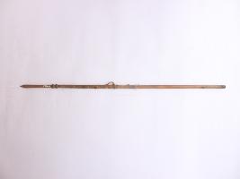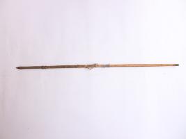 | Description / विवरण | This is common type of arrow made of wooden shaft and metal head. Shape of head is regular arrow type. Base of arrow has a piece of ivory that gives a steady hold during throw. Basal piece of ivory is tied with grass derived string. Head of the arrow is small and light weight. |