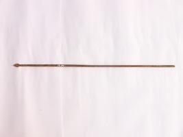 Description / विवरण | This is common type of arrow made of wooden shaft and metal head. Shape of head is regular arrow type. Base of arrow has a piece of ivory that gives a steady hold during throw. Basal piece of ivory is tied with grass derived string. Head of the arrow is small and light weight. |