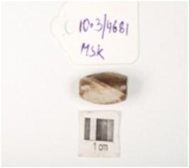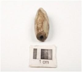| Description / विवरण | Standard barrel shaped agate bead with polished and partly chipped off surface, circular section and raw material given heat treatment. Grey in colour with white bands. |