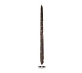 | Description / विवरण | Iron sword made of iron with a prominent tip and sharp edges, with a rib on an surface and chemically treated object. |