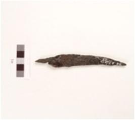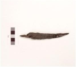 | Description / विवरण | Iron knife blade, chemically treated with tang and pointed tip. |