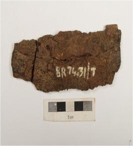 | Description / विवरण | Fragment of iron dagger with mid rib, broken into two pieces, rusted surface. |